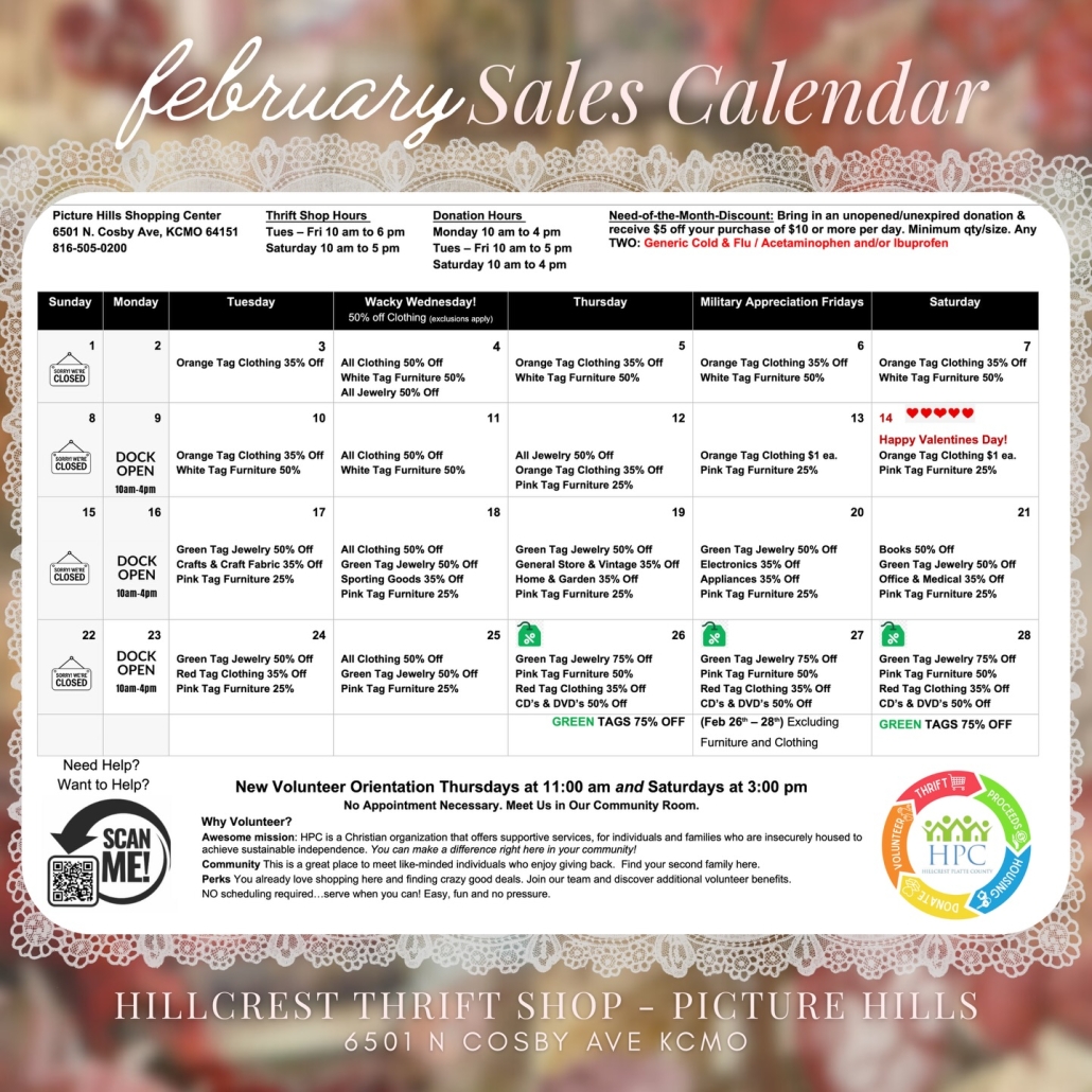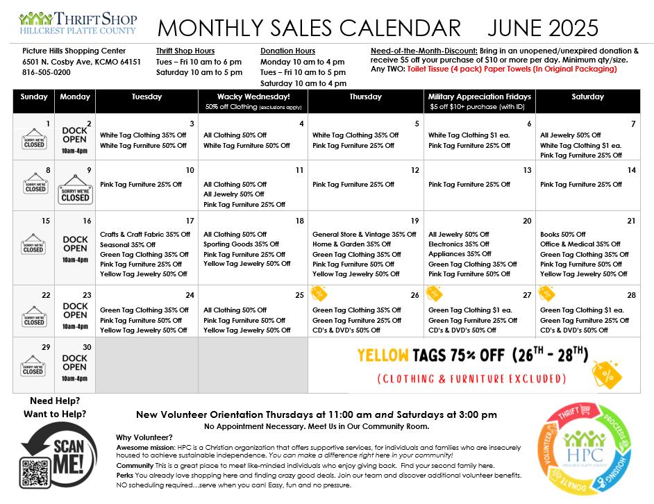 Current Thrift Store Sales & Daily Discounts at Picture Hills Thrift Store